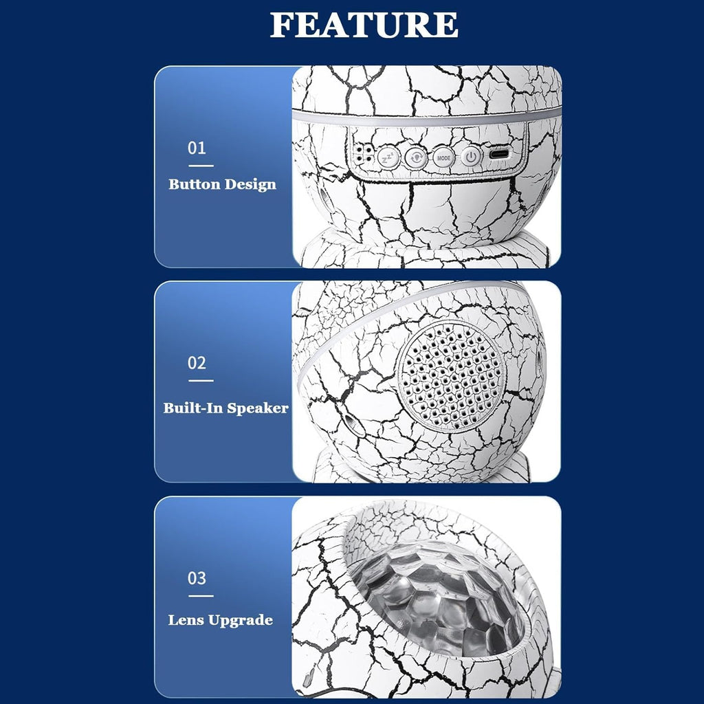 Dinoglow 4-in-1 Dinosaur Egg Night Light – Aurora Star & Northern Lights Projector (White)